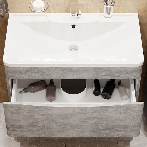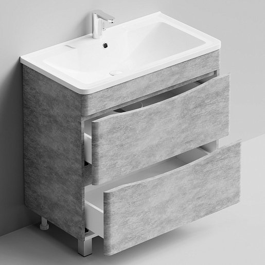 В комплекте: тумба, раковина, ножка (4 шт.), комплект креплений.