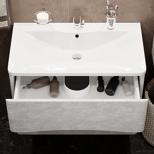 Водолей Тумба с раковиной Адель 80 подвесная белый камень