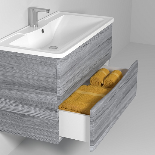 Подвесная тумба с раковиной Водолей Adel 80 лиственница структурная контрастно-серая.