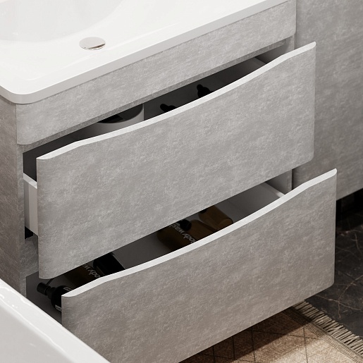 В комплекте: тумба, раковина, ножка (4 шт.), комплект креплений.