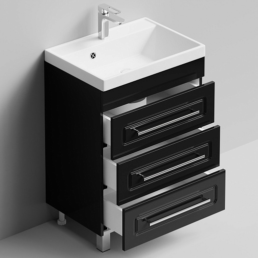 Комплектация: Тумба с раковиной, умывальник Madera Classic 60 (литьевой мрамор), выдвижные ящики с доводчиком.
