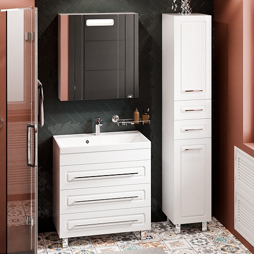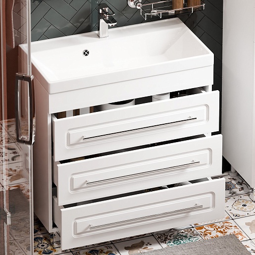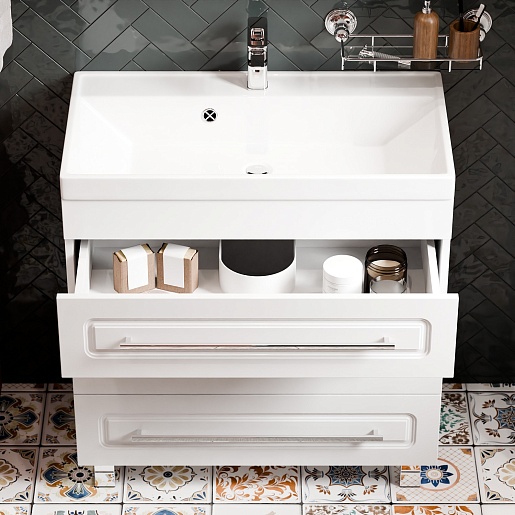 Комплектация: Тумба с раковиной, умывальник Classic 80 (Andrea доломит, литьевой мрамор), выдвижные ящики с доводчиком.
