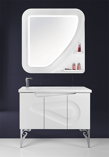Описание: дверцы. Тумба с умывальником TS-60101 100 см. Корпус и фасад окрашенный МДФ (5 слоев, покраска SAYERLACK Италия), петли с доводчиками на дверцах.