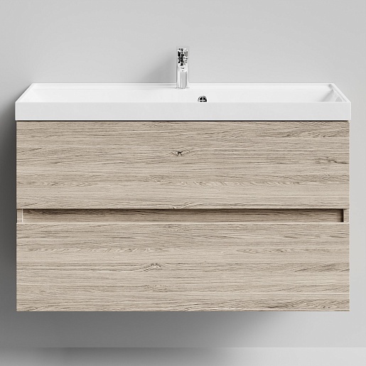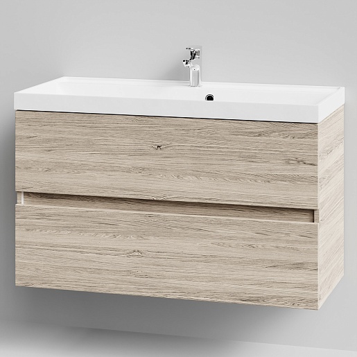 Подвесная тумба с раковиной Водолей Бест 100 ореховый дубослив светлый.
