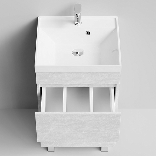 В комплекте: тумба, раковина, ножка (4 шт.), комплект креплений.