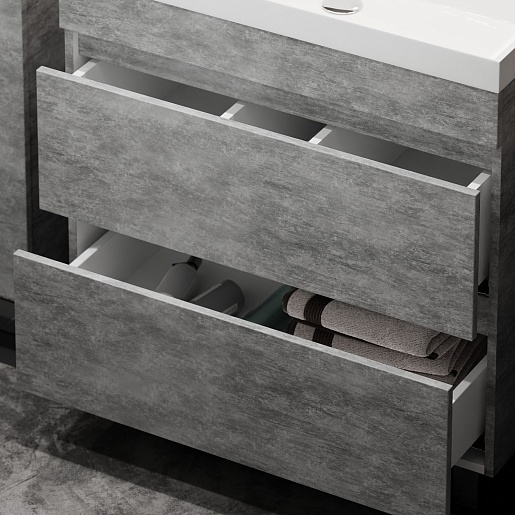 В комплекте: тумба, раковина, ножка (4 шт.), комплект креплений.