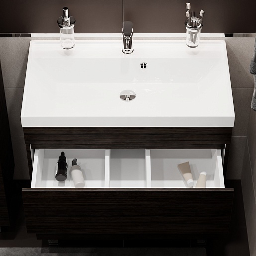 В комплекте: тумба, раковина, ножка (4 шт.), комплект креплений.