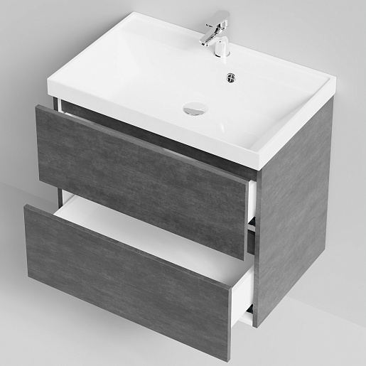 Водолей Тумба с раковиной Бест 70 подвесная серый камень