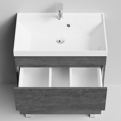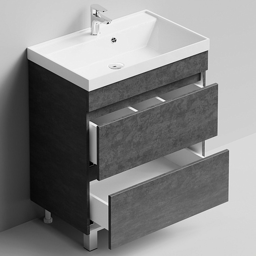 В комплекте: тумба, раковина, ножка (4 шт.), комплект креплений.