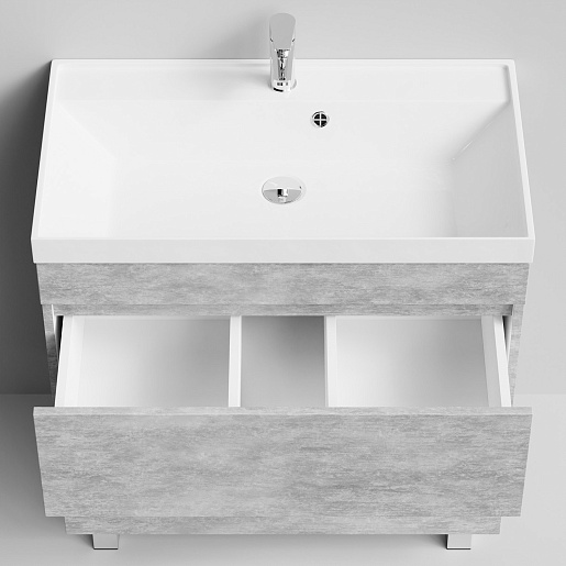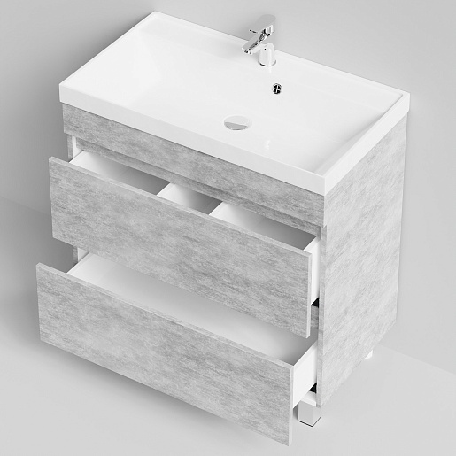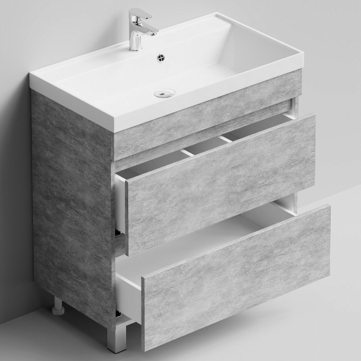 В комплекте: тумба, раковина, ножка (4 шт.), комплект креплений.