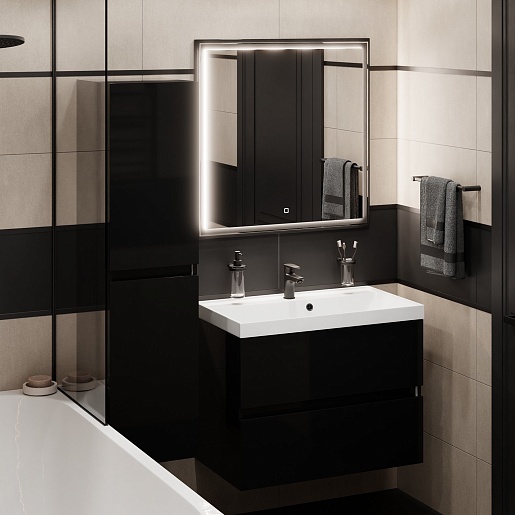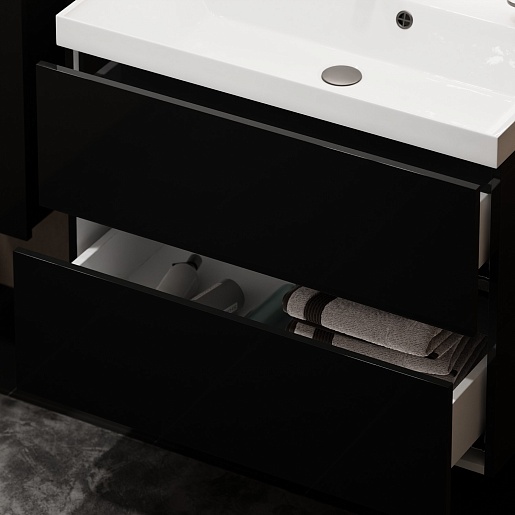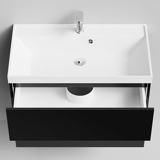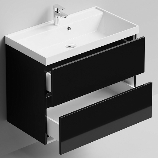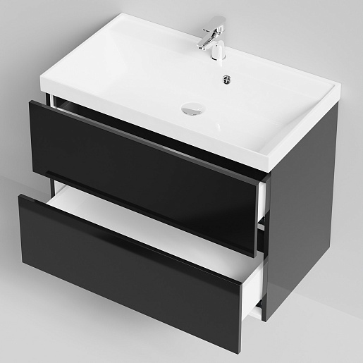 Водолей Тумба с раковиной Бест 80 подвесная черная