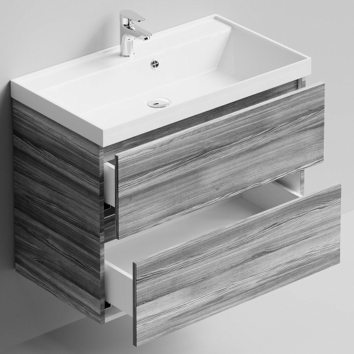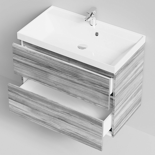 Тумба под раковину Бест 80 подвесная лиственница структурная контрастно-серая