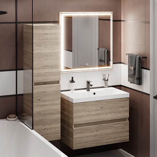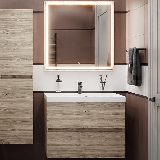Тумба под раковину Бест 80 подвесная ореховый дубослив светлый