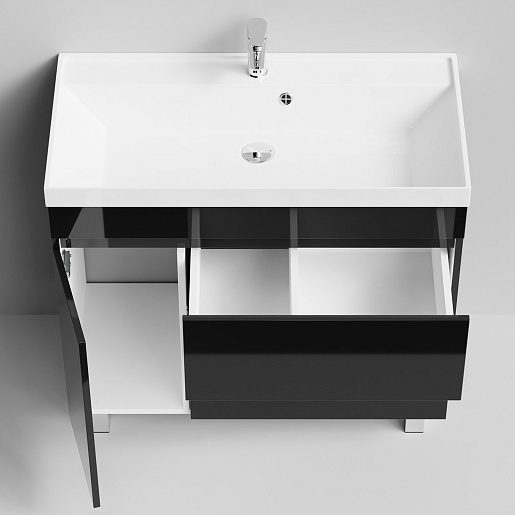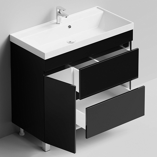 Напольная тумба с раковиной Водолей Бест 90 L черная.