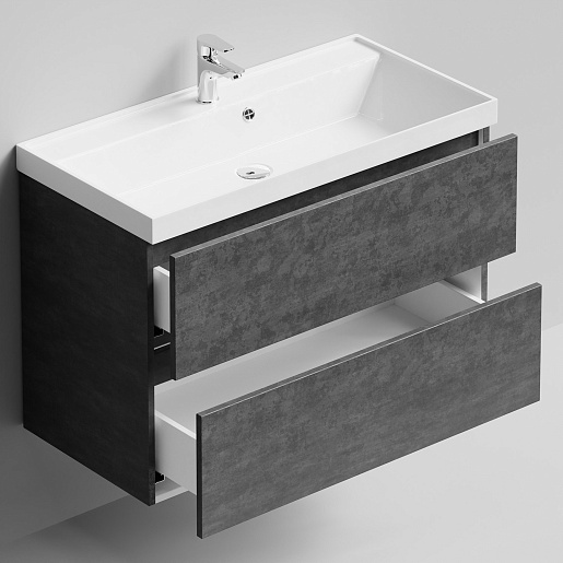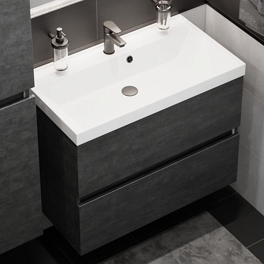 Водолей Тумба с раковиной Бест 90 подвесная серый камень