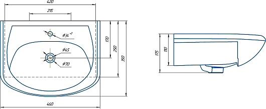 - Раковина со слив-переливом.