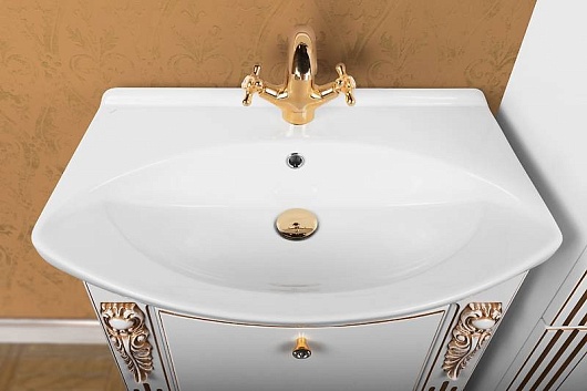 Водолей Тумба с раковиной "Кармен 75" 2 ящика, белая/золото