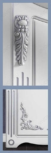 - Тумба с раковиной Кармен 85: накладная раковина Dreja, тумба под раковину (патина, серебро), декор из дерева с серебряной патиной, две распашные двери, фурнитура BLUM.