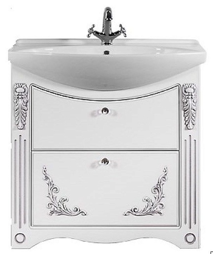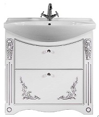 Водолей Тумба с раковиной "Кармен 85" 2 ящика, белая/серебро