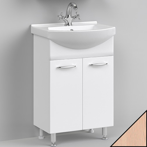 Комплектация: Тумба с раковиной, раковина Альфа 55, регулируемые по высоте ножки.