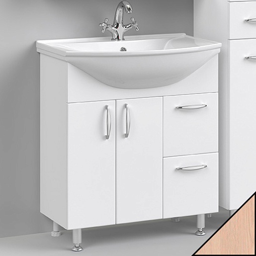 Комплектация: Тумба с раковиной Стиль 75, регулируемые по высоте ножки.