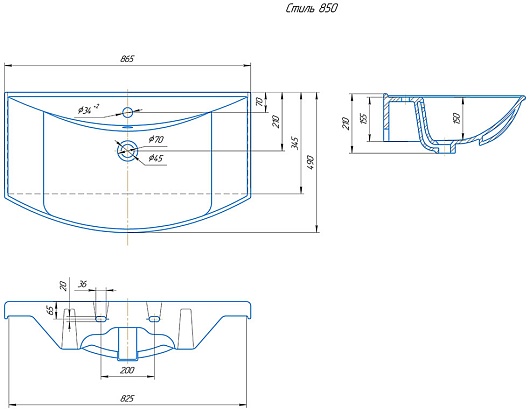 Комплектация: Тумба с раковиной Стиль 85, регулируемые по высоте ножки.
