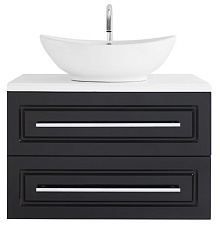 - Тумба с раковиной Либретто 80: раковина Гамма 56 см, тумба со столешницей (композитный материал) под накладную раковину, ручки из металла, петли и ящики с доводчиками.