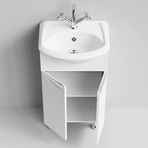 - тумба под раковину: распашная дверца - 2 шт., вкладная полка, ручка (металл, врезная) - 2 шт., ножки (комплект из 4 шт.): металл - 2 шт., пластик - 2 шт.