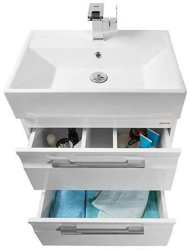 Водолей Тумба с раковиной Мальта 60 с ящиками белая