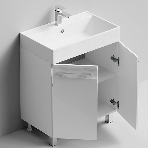 - Тумба с раковиной Мальта 70: раковина Мальта 70, тумба под раковину, ручки и ножки из металла, петли с доводчиками.