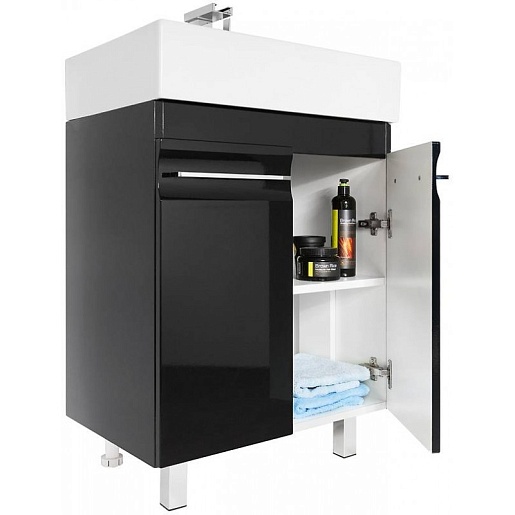 Водолей Тумба с раковиной Мальта 70 с дверками черная