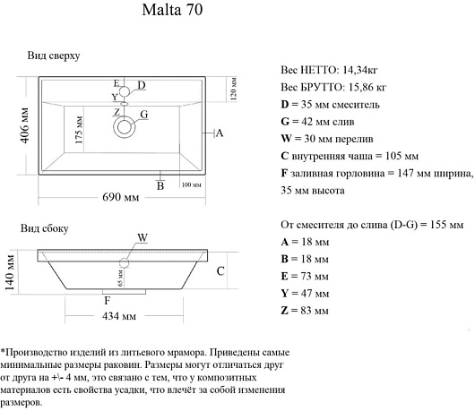 - Тумба с раковиной Мальта 70: раковина Мальта 70, тумба под раковину, ручки и ножки из металла, петли с доводчиками.
