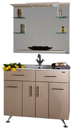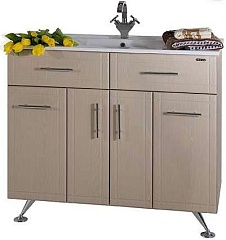 Комплектация: Тумба с раковиной, умывальник Ницца 100, регулируемые по высоте ножки, бельевая корзина.