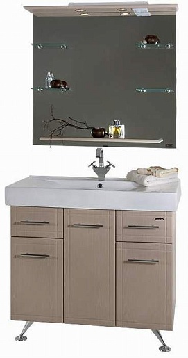Комплектация: Тумба с раковиной, умывальник Elen 90, регулируемые по высоте ножки.
