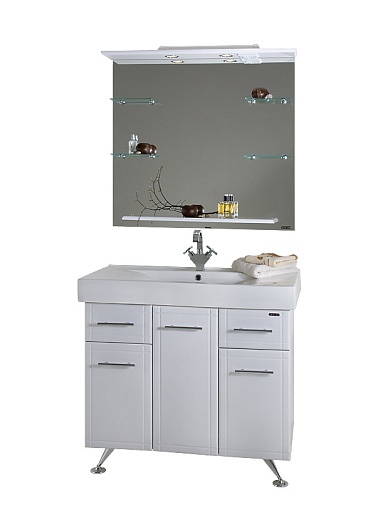Комплектация: Тумба с раковиной, умывальник Ницца 90, регулируемые по высоте ножки.