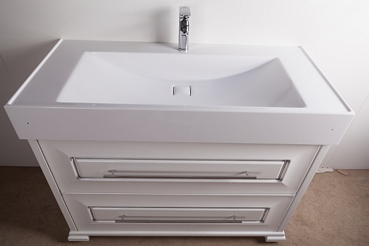 Тумба под раковину Риккардо 110 с ящиками, белая/патина серебро