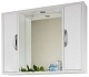 Комплектация: влагостойкая зеркальная панель с открытой полочкой, два боковых шкафчик с распашными дверцами, галогеновый светильник, розетка для фена или бритвы.