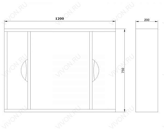 Комплектация: влагостойкая зеркальная панель с открытой полочкой, два боковых шкафчик с распашными дверцами, галогеновый светильник, розетка для фена или бритвы.