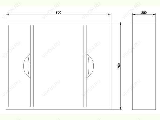 Размеры ШxГxВ: 900x200x750мм.