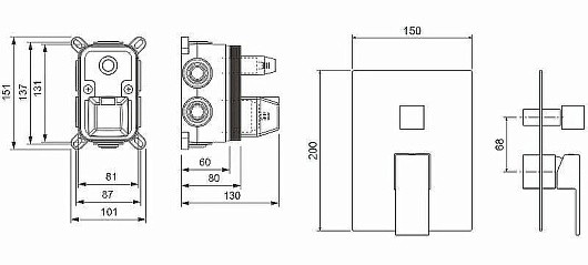 - Смеситель для душа (внешняя и внутренняя часть).