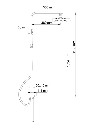 - Душевая насадка 300х200 мм, 112 форсунок, нержавеющая сталь