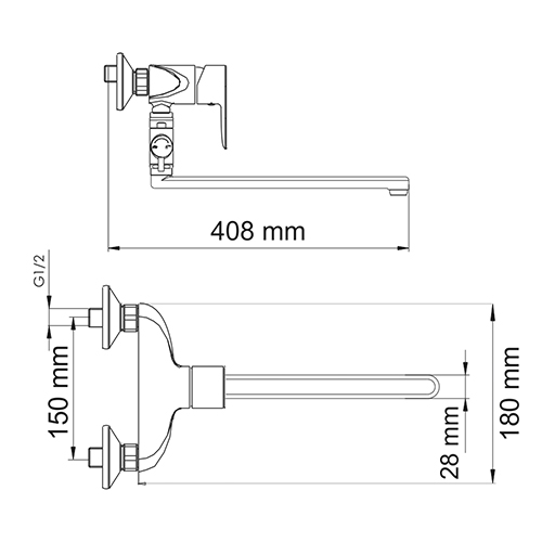 - Шланг металлический 1500 мм, подключение к лейке