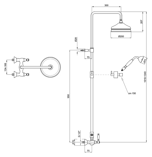 - Длина кронштейна верхнего душа: 30 см.