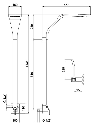 - Прямоугольный верхний душ шириной 15 см.
