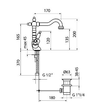 Высота излива, мм: