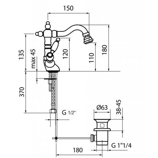 Высота излива, мм: