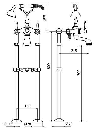 Webert Смеситель Alexandra AL720801017 хром/золото, для ванны напольный