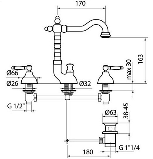 Webert Смеситель Alexandra AL750202065 бронза, для раковины