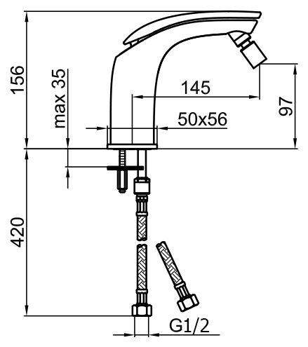 • гибкая подводка G1/2 из нержавеющей стали длиной 37 см