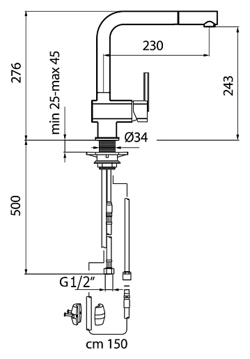 - длина шланга выдвижного излива: 150 см